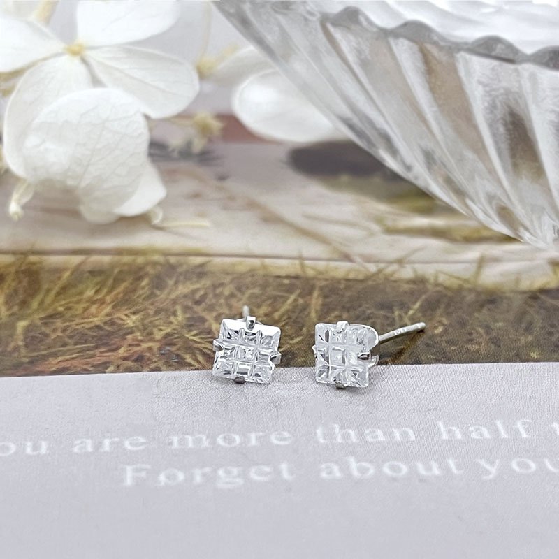 純銀耳環-E50923SZ0060(5mm)(四爪格紋)