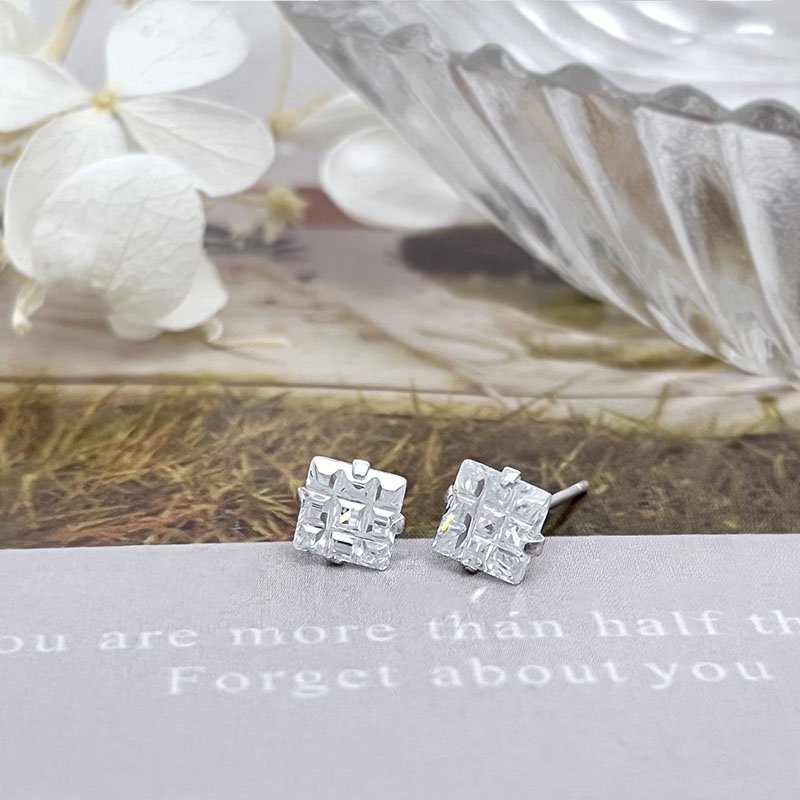 純銀耳環-E50923SZ0070(6mm)(四爪格紋)