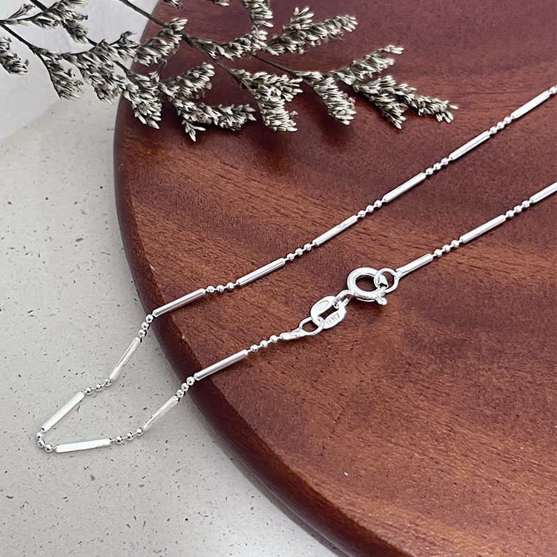 純銀項鍊-9115_1.5mm1長柱3小珠(16"/18")